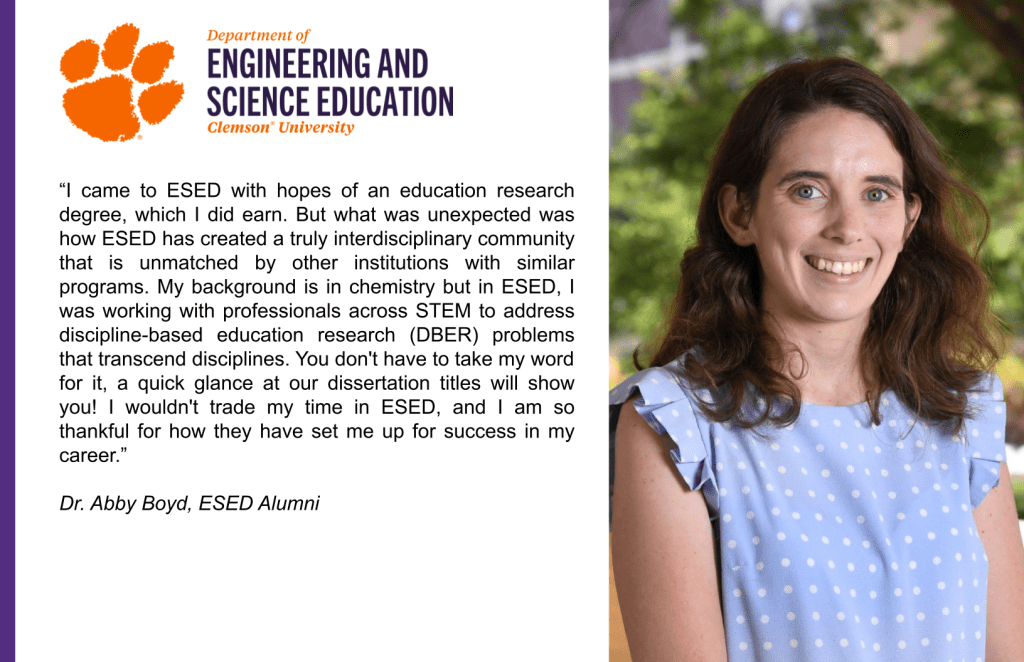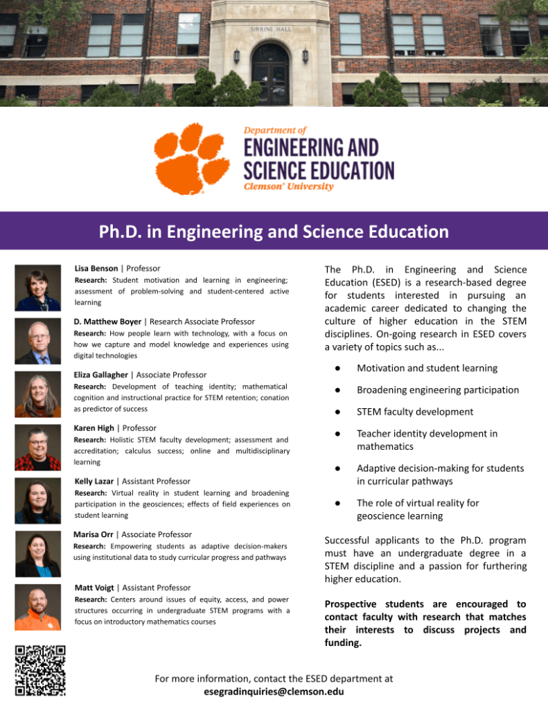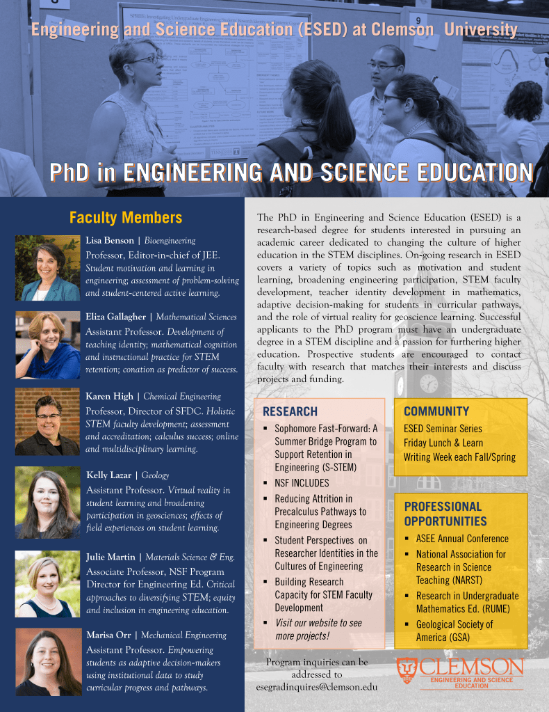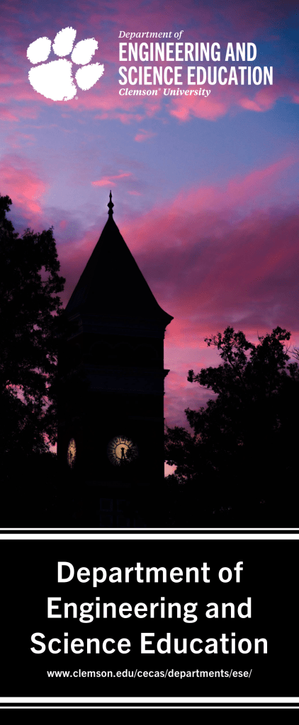 This page contains work I have done for the Department of Engineering and Science Education (ESED) at Clemson University. Please visit their website at clemson.edu/cecas/departments/ese/ for more information about the department.
